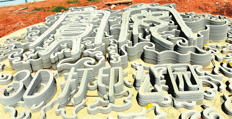 3D打印混凝土技術(shù)在建設(shè)施工現(xiàn)場直接完成人行鋪地、雕塑、座椅、樹池、花壇、擋土墻等“打印”建造。