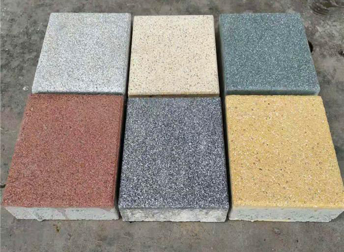 色彩豐富、可仿制各種類花崗巖的面層、肌理、質(zhì)感,其效果完全可以與花崗巖媲美,根據(jù)設(shè)計的要求,在地面鋪裝跳色中表現(xiàn)很優(yōu)異。